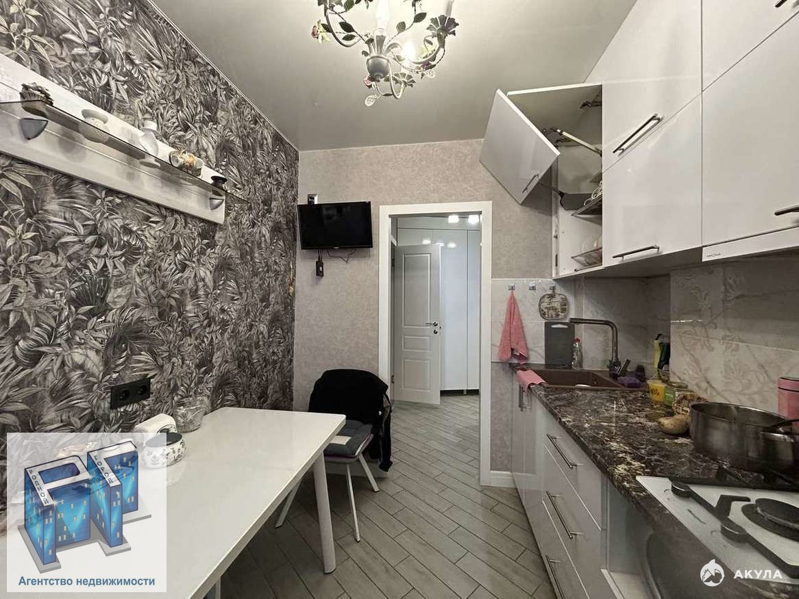 В квартире остаётся кухонный гарнитур, встроенные шкафы в коридоре, спит система.