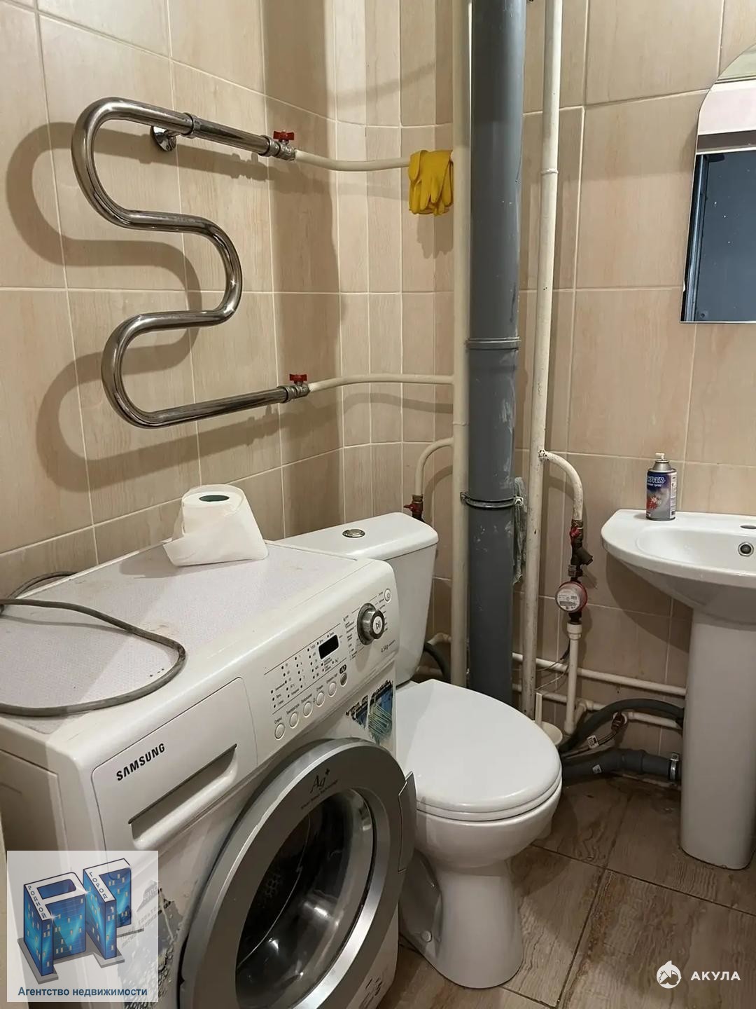 В ванной комнате - плитка .