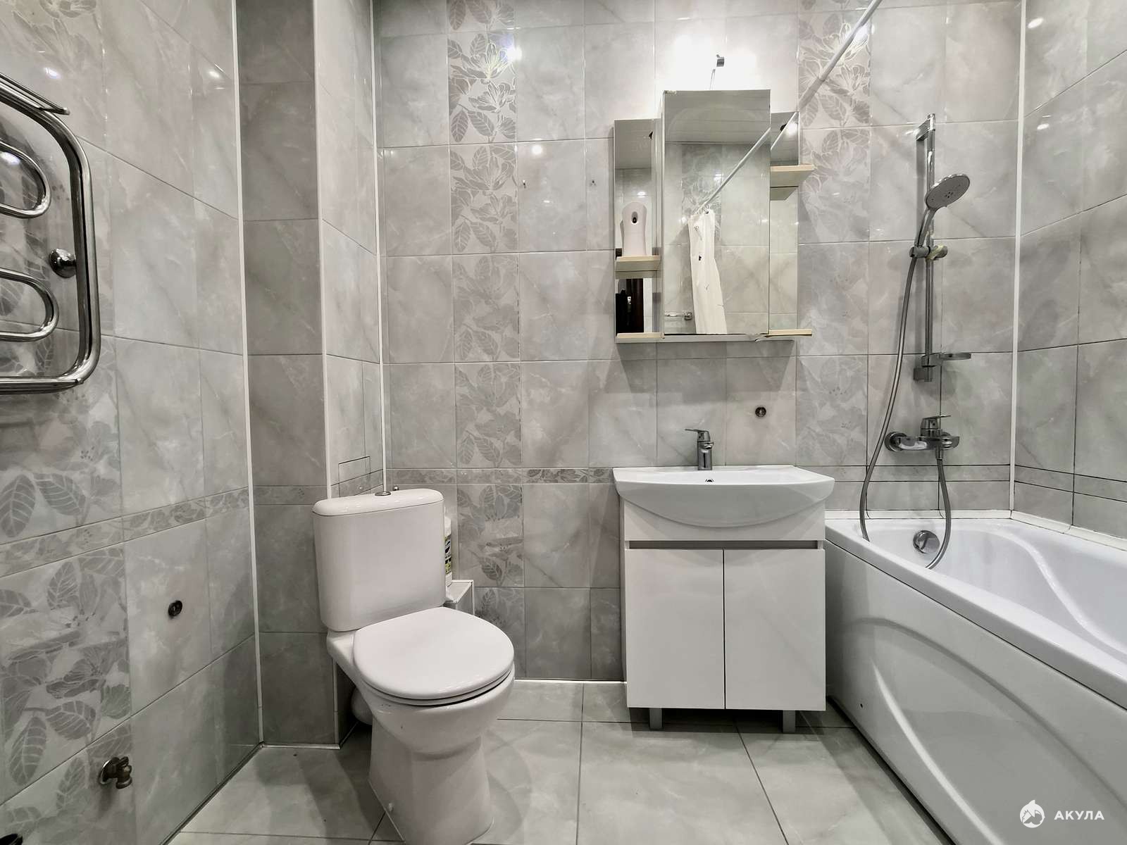 -на полу ламинат и плитка.
