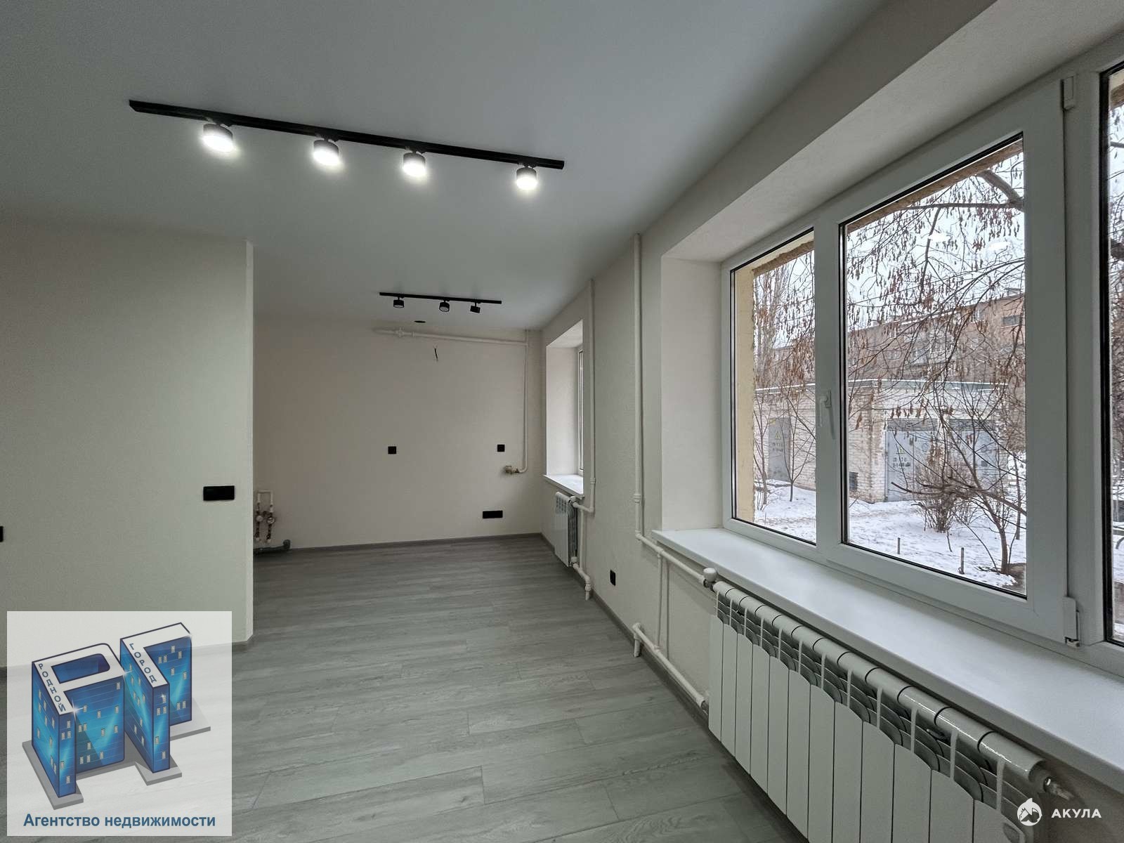 Большой зал совмещенный с кухней с двумя большими окнами