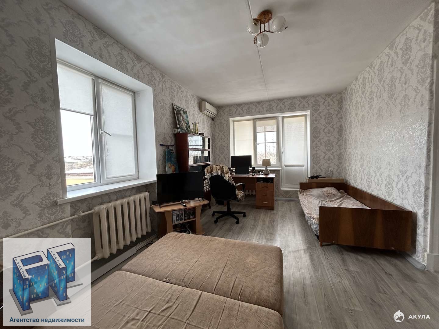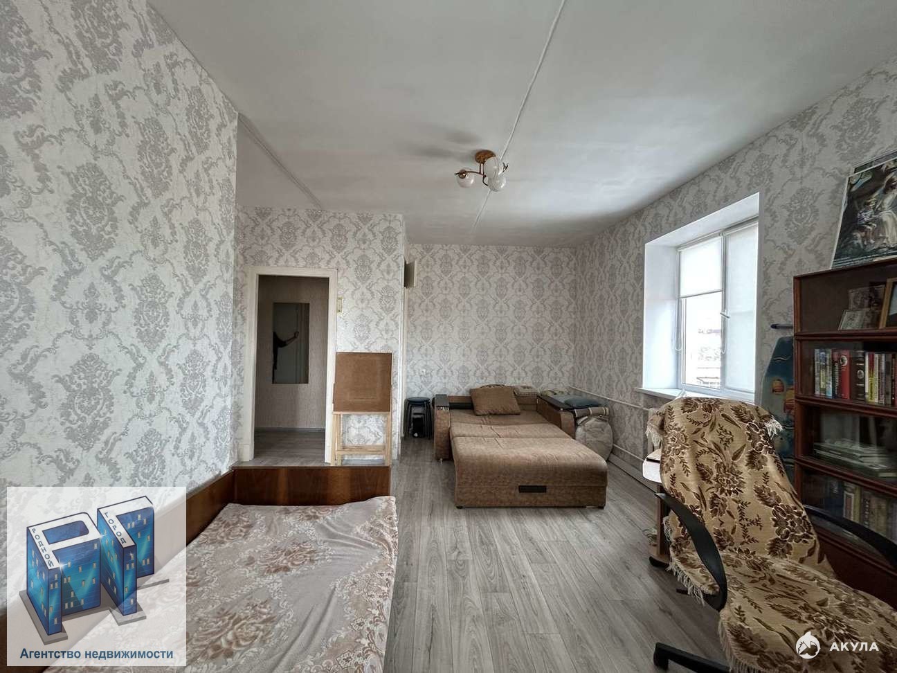 Квартира в жилом состоянии :деревянные окна, на полу линолиум .