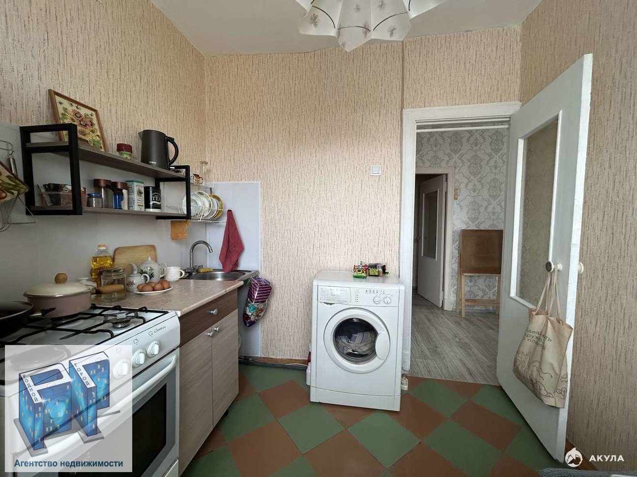 Кухня компактная, но функциональная, с необходимыми бытовыми приборами и местом для приготовления пищи.