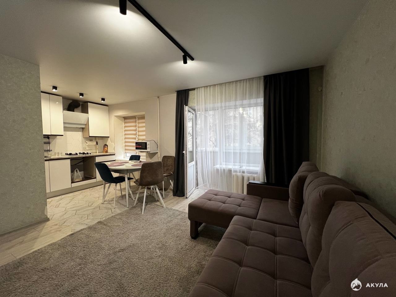 Квартира укомплектована частично мебелью(шкаф, прихожая, диван, кровать, кухонный гарнитур, стол и 4 стула) и техникой ( телевизор, сплит-система, СВЧ, газовая поверхность, вытяжка)